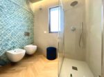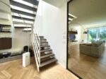 Pavimentazione in parquet a spina ungherese, porta d’ingresso blindata, infissi “Finstral”, tutte le porte interne sono “Dierre” con la sola eccezione della porta a tutta altezza in cristallo realizzata su misura da un artigiano.
