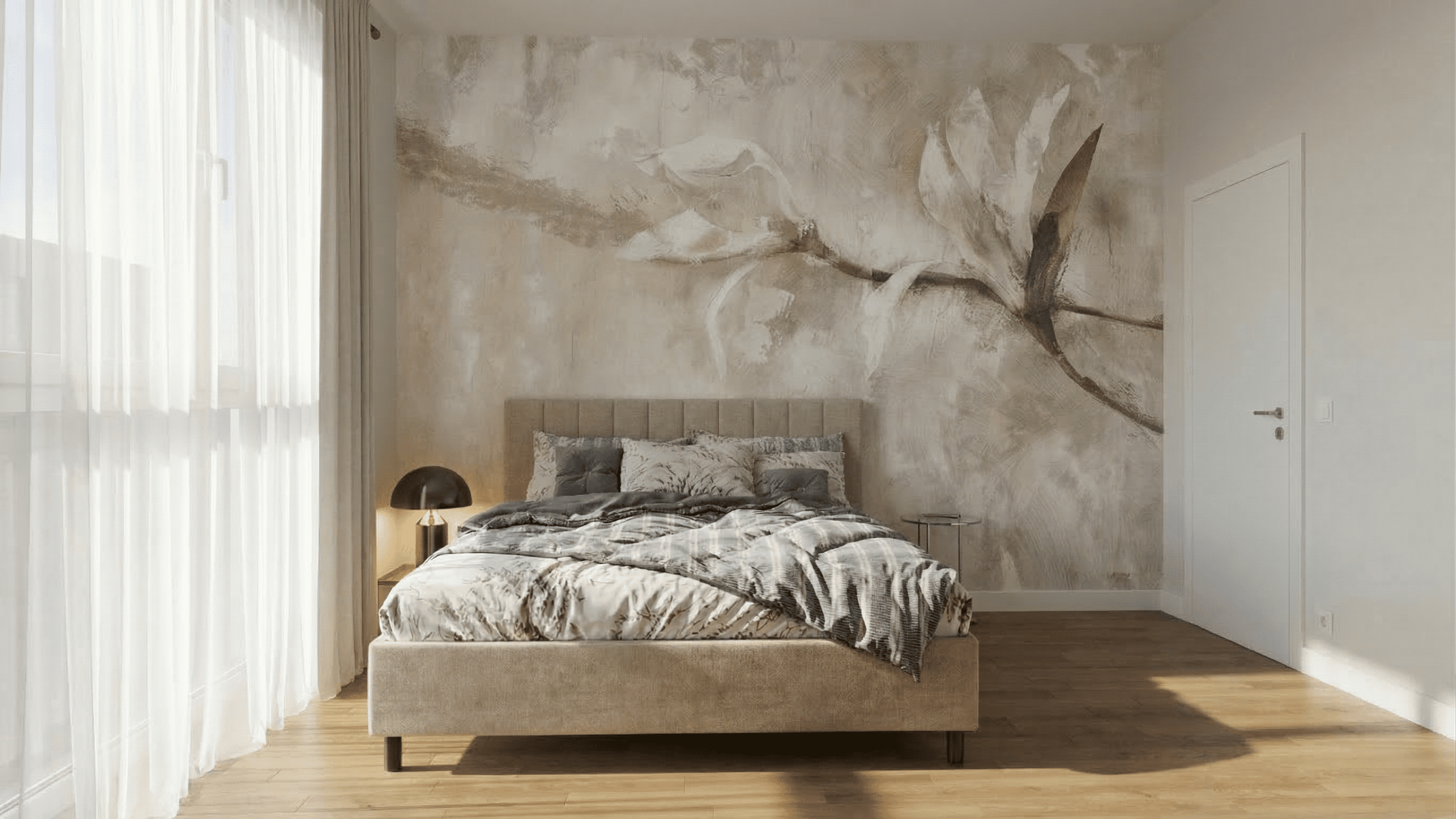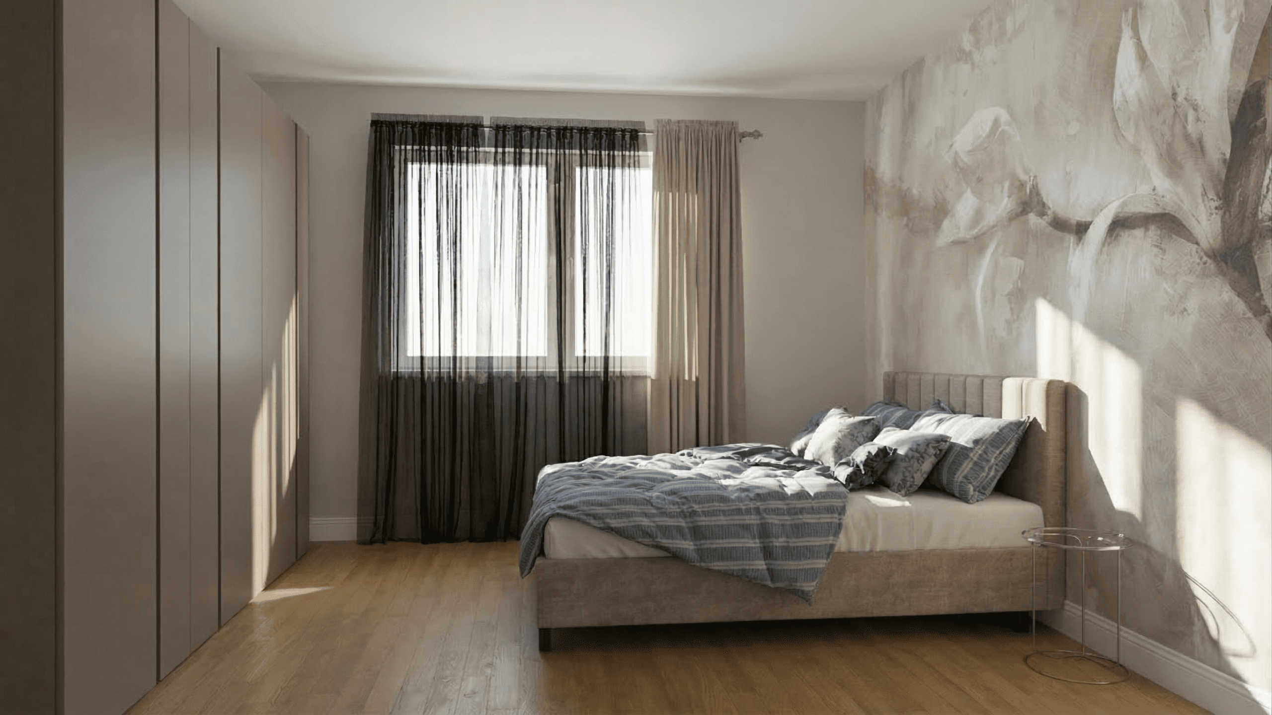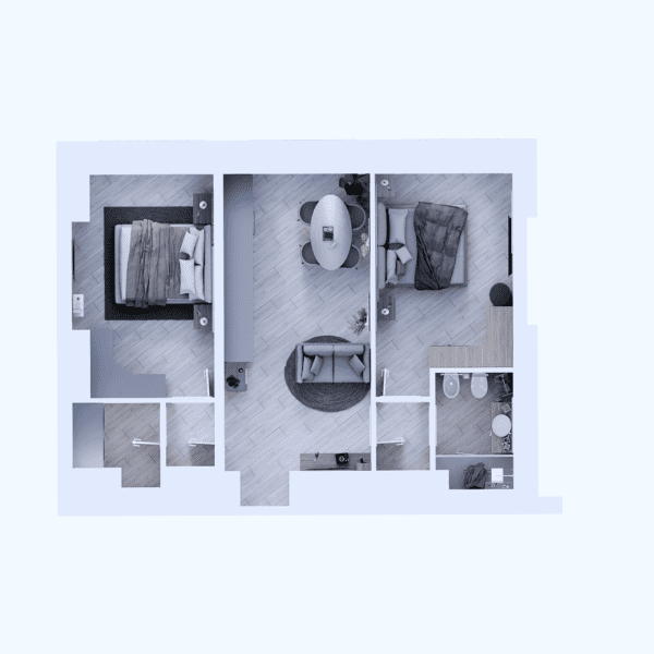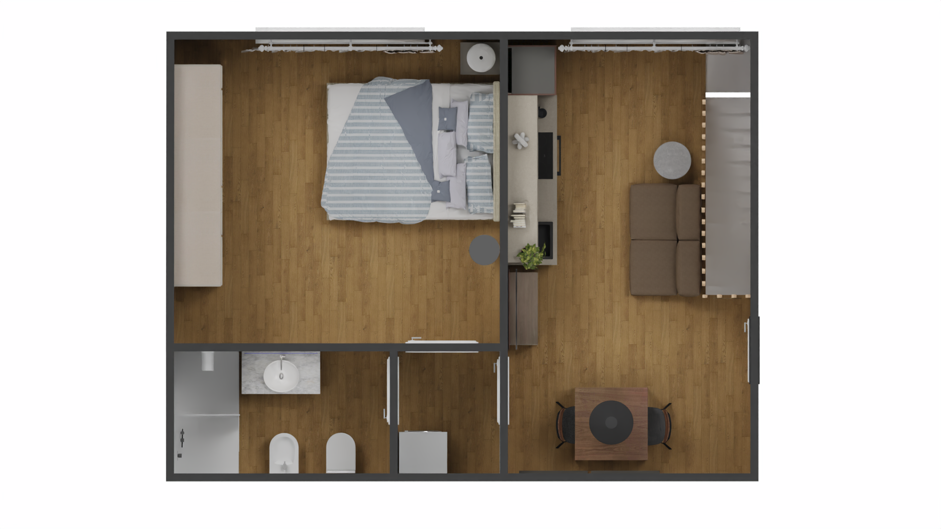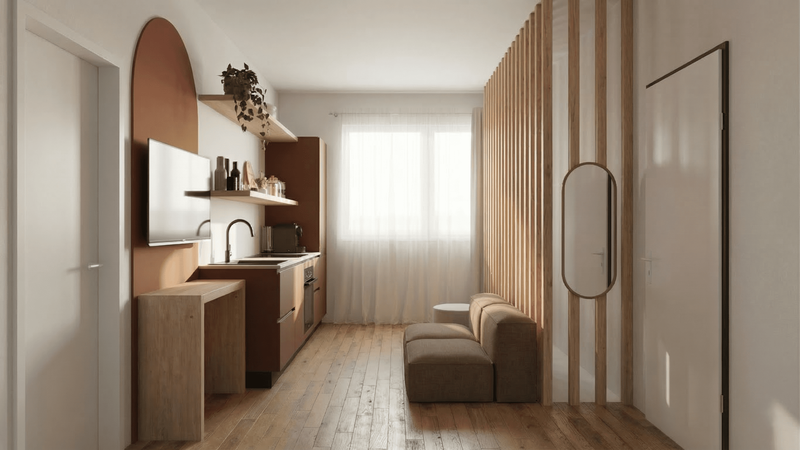 Pavimentazione in gres effetto legno uniforme in tutta la casa.