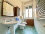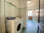 Bagno finestrato con zona lavanderia nell’antibagno e box doccia.