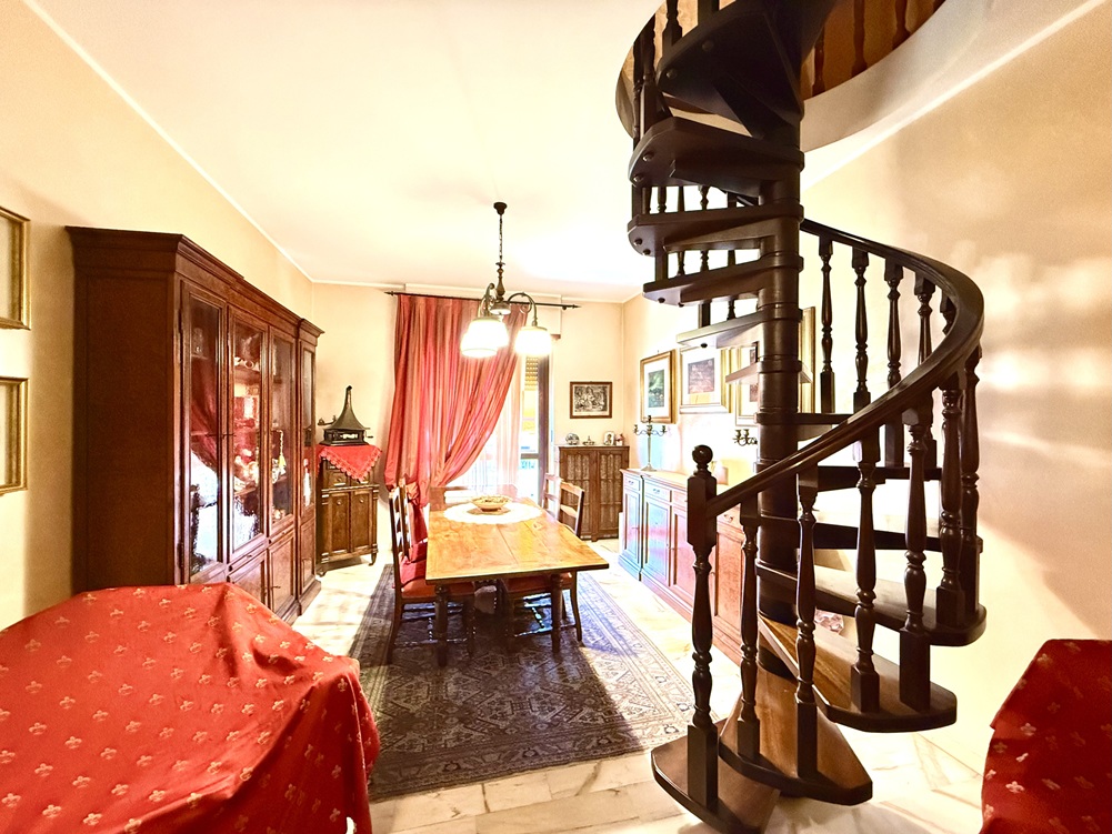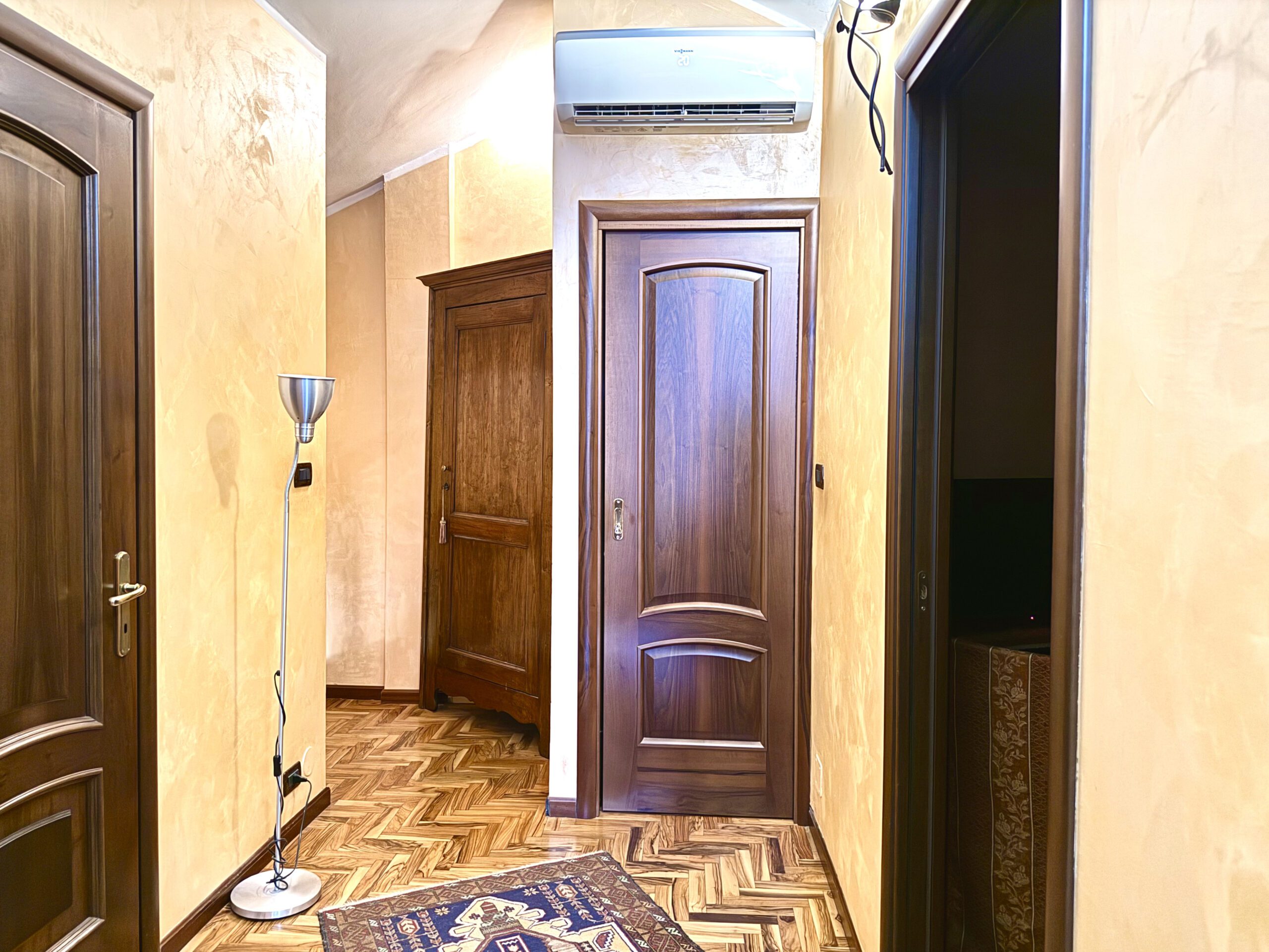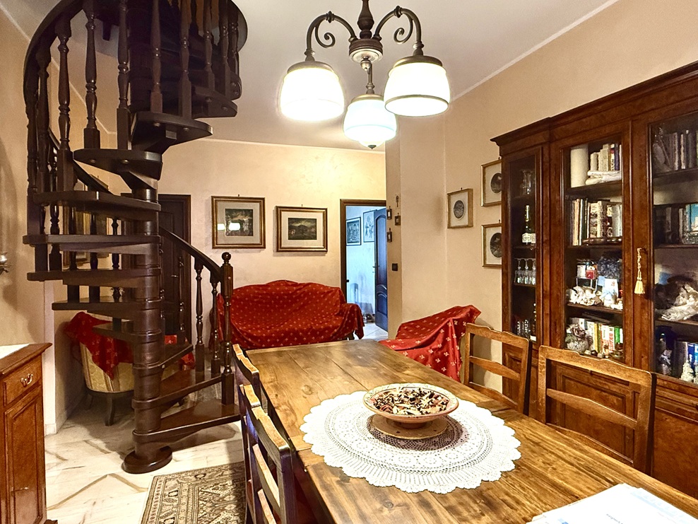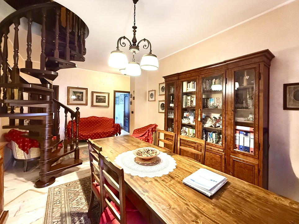 I due piani sono collegati internamente con una scala in legno noce e anche esternamente dalla scala condominiale, volendo si potrebbe aprire un secondo ingresso.