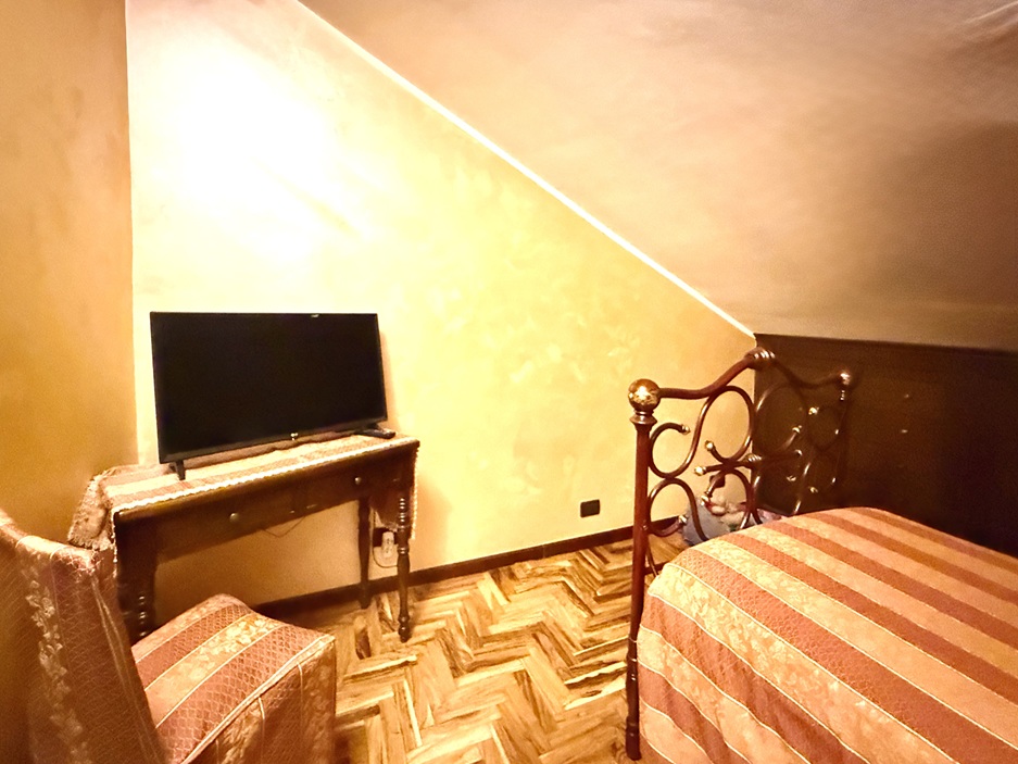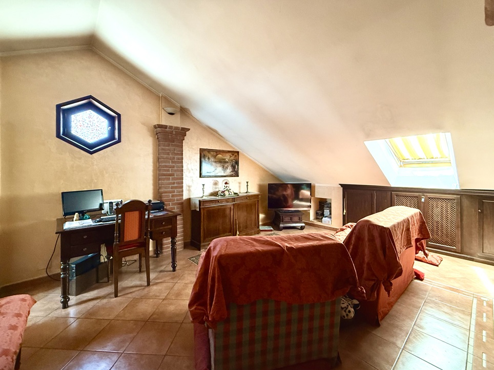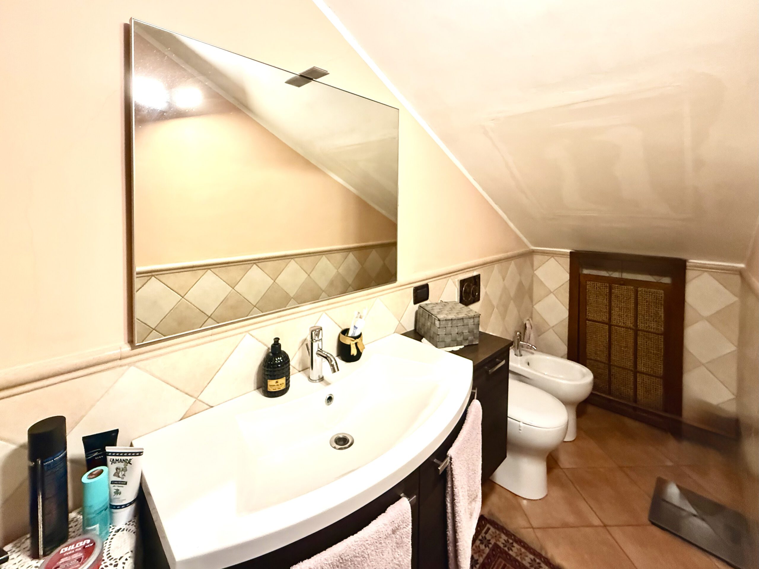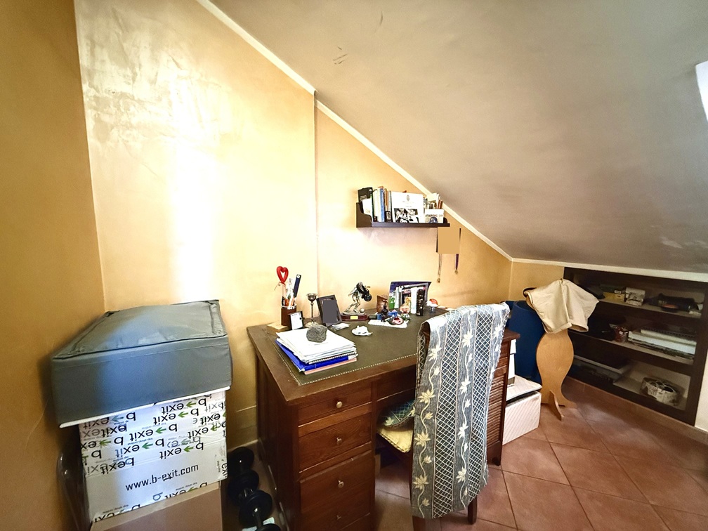 I due piani sono collegati internamente con una scala in legno noce e anche esternamente dalla scala condominiale, volendo si potrebbe aprire un secondo ingresso.